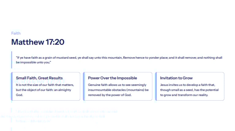 A Curated Spiritual Library: 50 powerful verses organized into essential themes like Salvation, Faith, Hope, Love, Peace, Strength, and Wisdom.